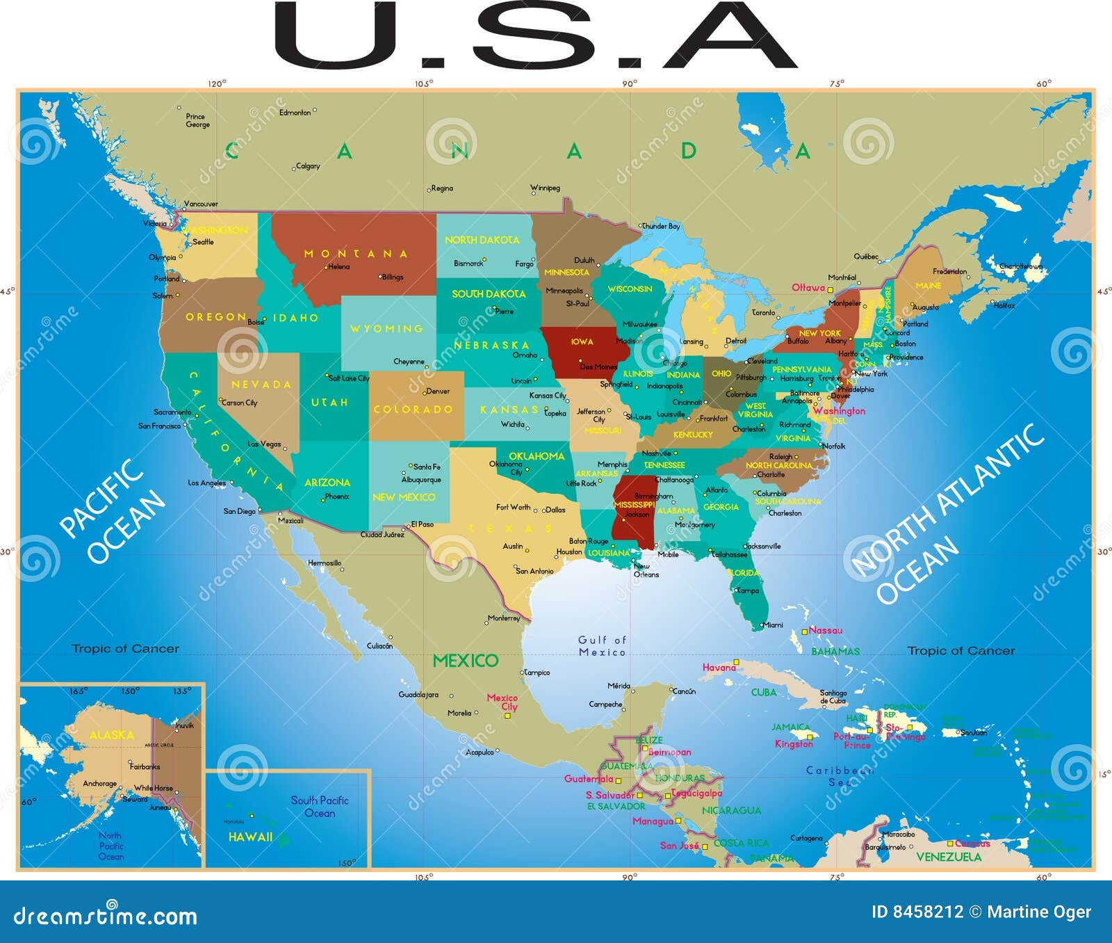 USA Karte, Landkarte US-Bundesstaaten und ihre Hauptstadte