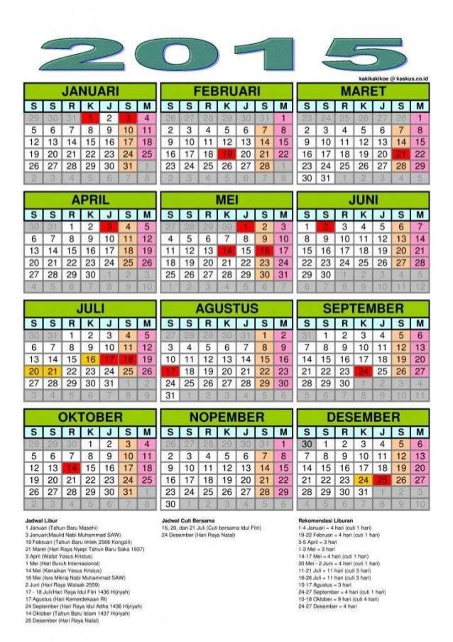 Kalender 2015, cuti bersama dan hari libur nasional @ Berjibaku ...